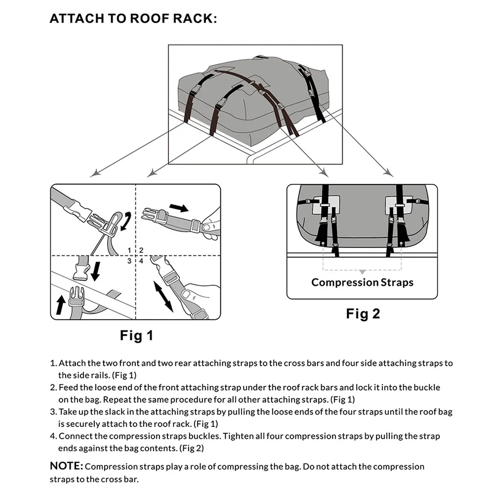 2. Не превышайте лимит веса крыши вашего автомобиля. Ознакомьтесь с руководством по эксплуатации автомобилей, чтобы узнать Максимальный вес (не более 30 кг).