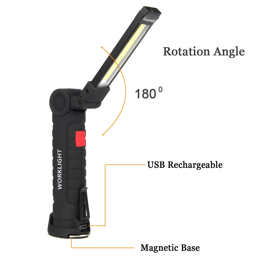Пластиковый корпус, завернутый в слой черного углерода, приятный на ощупь, не скользит. Поставляется с магнитом и крючком, складной дизайн, прост в использовании в небольшом пространстве внутри. Высокий COB светодиодный, низкий COB светодиодный, светодиодный светильник, красный светильник, с красными вспышками круглый светильник, 5-различные светильник ing (несколько режимов работы), чтобы удовлетворить ваш светильник ing потребности. Светодиодный светильник, Зеленый Энергосбережение и защита окружающей среды, использование более длительного времени. Встроенный аккумулятор, вы можете использовать usb-кабель для зарядки. Примечание: маленькая Пылезащитная заглушка для USB