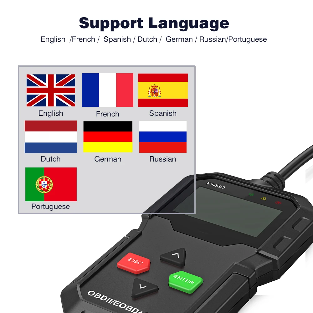 1. Функция KONNWEI KW590 гораздо лучше, чем AD310/OM123/NT201, И он может поддерживать диагностическую функцию OBDII 10 режимов, в то время как другой инструмент сканирования работает только для 5-6 функций s в соответствии с их диагностическим меню. 2. Встроенная память, она может хранить диагностические данные, замораживать кадр и коды неисправностей. Поддержка воспроизведения, вы можете просмотреть сохраненные данные, когда вы находитесь дома с питанием от ПК через порт USB. 3. Поддержка бессрочного обновления. Полностью совместим с официальной версией WINDOWS XP- WIN10. 4. Поддержка печати диагностического отчета через компьютер. 5. С дополнительной небольшой плюшевой сумкой, легко хранить и держать ваш сканирующий инструмент аккуратным в гараже! 6. Чип, используемый в KW590, работает гораздо быстрее, более стабильно и надежно. Скорость считывания кодов или данных в режиме реального времени в 2 -3 раза быстрее, чем у одного и того же инструмента сканирования! 7. Поддержка нескольких языков: английский/французский/испанский/голландский/немецкий/русский/португальский