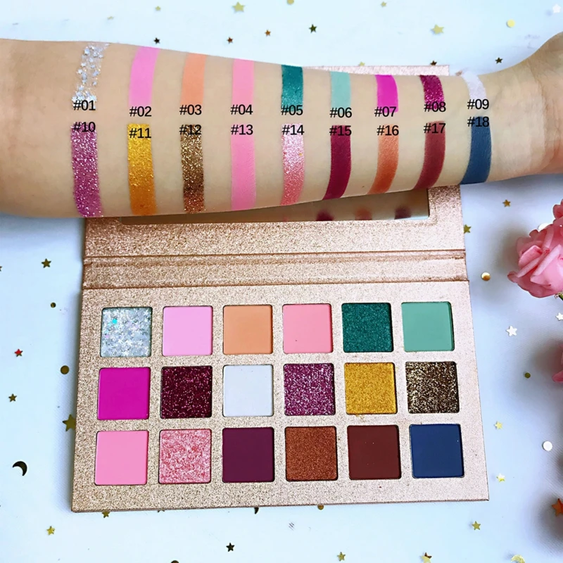Оптовая торговля. Палитра теней для век 18 цветов. Матовая и блестящая палитра теней для век без логотипа.