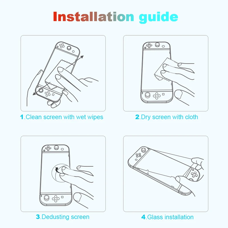 В нашей закаленной пленке используется полноэкранный дизайн, Полностью покрывающий экран контроллера Nintendo Switch. Вязкость нашей закаленной пленки может быть тесно прикреплена к вашему контроллеру для более полной защиты без отслоения края и попадания пыли в феномен контроллера! Наш материал из закаленного стекла обрабатывался при высоких температурах и тестировался повторно. Мы считаем, что 9H Высокая твердость может эффективно противостоять царапинам поверхности экрана, вызванным резким повреждением объекта! Это может сделать ваш экран не легко царапать и защитить оригинальный экран!