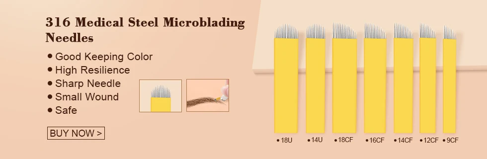 Цвет: белый Используется для: ручного микроблейдинга бровей Стиль: 7CF/9CF/12CF/14CF/16CF/18CF/12U/14U/18U/21U Особенности: 1. Он изготовлен из высококачественной нержавеющей стали, достаточно прочный для ежедневного использования 2. Иглы острые и эластичные, делают линию бровей красивой. 3. Материал: иголки сделаны из нержавеющей стали типа 316 с добавлением сплава молибдена предотвращает специфические формы коррозии 4. Для оптимальной безопасности и качества, вы можете доверять этим иглы татуировки, которые были стерилизованы гамма-лучами 5. Индивидуально упакованные, только для одного использования, идеально подходят для всех видов татуировок 6. Использование: бровей или губ татуировки Макияж/красота Список Пакетов 50 шт./лот Biomaser иглы