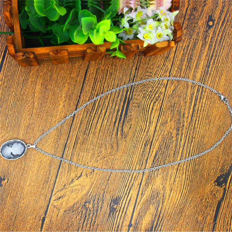Material:Resin cameo,Stainless steel chain,copper hook,zinc alloy pendant with antique silver plated