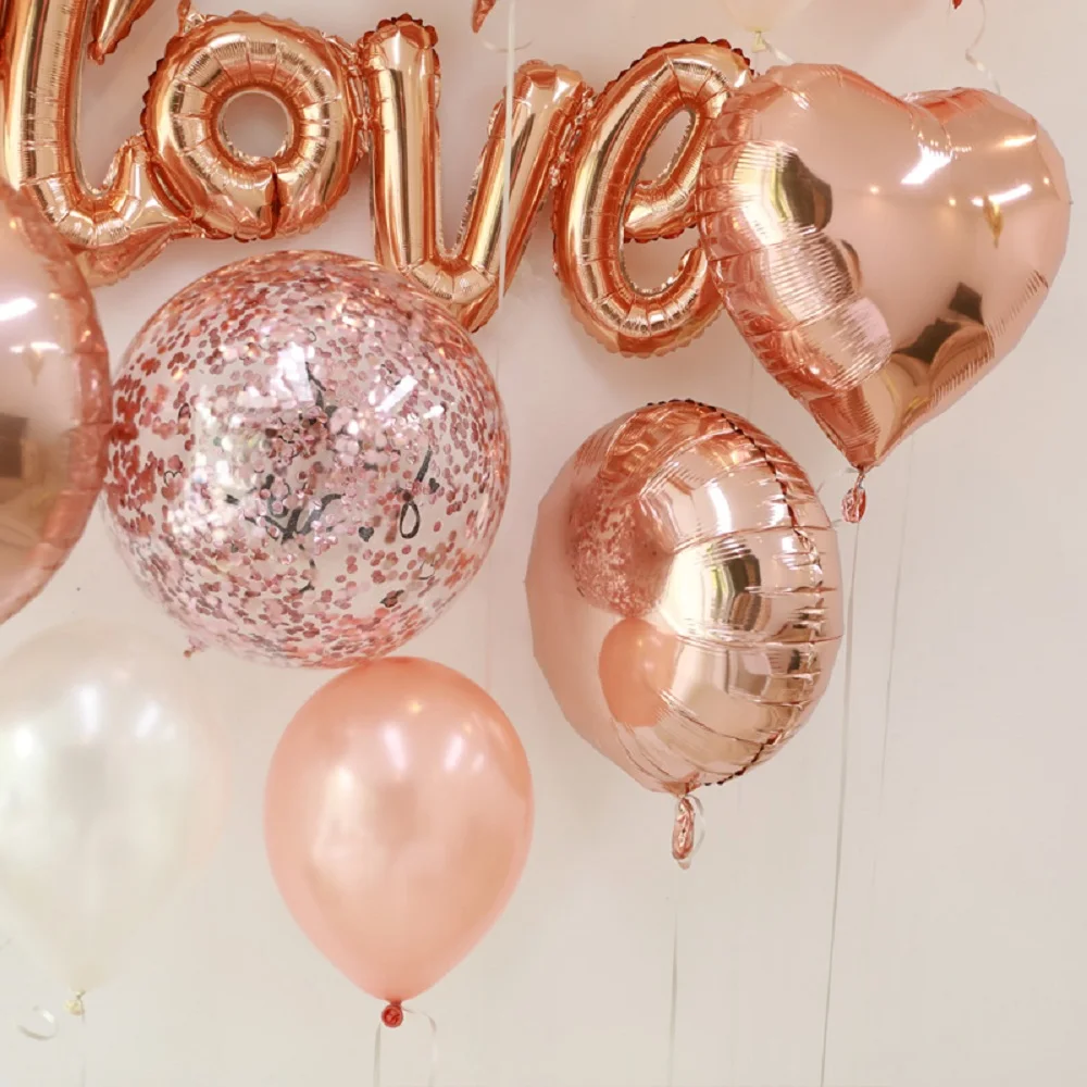 5 шт./лот, 18 дюймов розовое золото 4D и формой сердца Воздушные шары пузырь с золотым конфетти для свадьбы, дня рождения вечерние Декор гелий расходные материалы