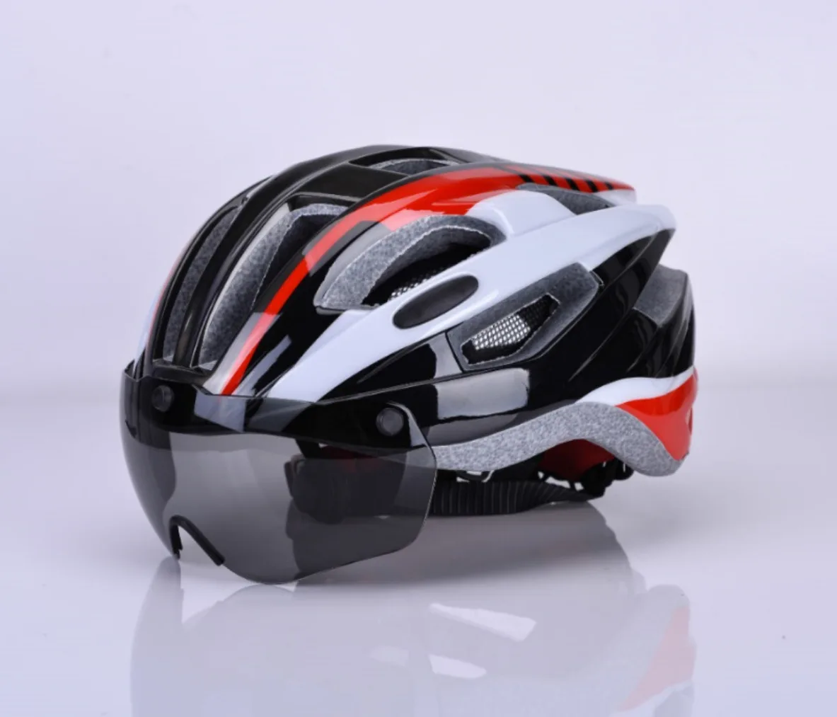 [Наименование] цельный велосипедный шлем с магнитными присосками [Цвет] матовый черный, черный, красный, черный, синий, черный, зеленый 【Вес 】 около 270 г [Конфигурация] Корпус: пластиковый блистерный полиэтилен из поликарбоната; Основной корпус: импортный Черный EPS пенопласт для защиты окружающей среды; Внутренняя подкладка: губка горячего прессования впитывающая пот здоровая ткань внутренняя подкладка; Регулятор: регулируемая окружность головы Очки: магнитный тип; Тесьма: черная нейлоновая тесьма [Размер] все размеры s, независимо от размера, обычно подходят для всех типов головы, с регуляторами для регулировки размера, окружность головы подходит: 55-62 см, ширина головы подходит: форма головы в пределах 18,5 см.