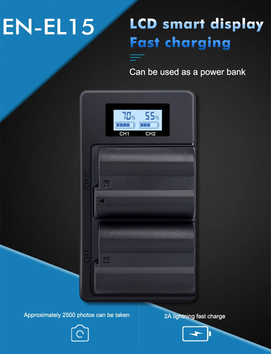 Тип батареи: литий-ионныйСовместимость с:for Nikon D500,D600, D610, D750,D780,D800, D800E, D810, D810A, D850, D7000, D7100, D7200, D7500,1 V1, V1, Z5,Z6,Z6 II,Z7 ,Z7 II ,MH-25 ,L5 CamerasМодель: EN-EL15Напряжение: 7,0 ВЕмкость: 2500 мАчВ комплект входит:Аккумулятор EN-EL15-1 шт.Основная особенность:* Премиум литий-ионные ячейки новый аккумулятор* Высокая плотность энергии, долгий срок службы, без памяти* Дополнительная мощность, больше снимков для ваших камер* Безопасный и надежный, идеально подходит для путешествий и активного отдыха