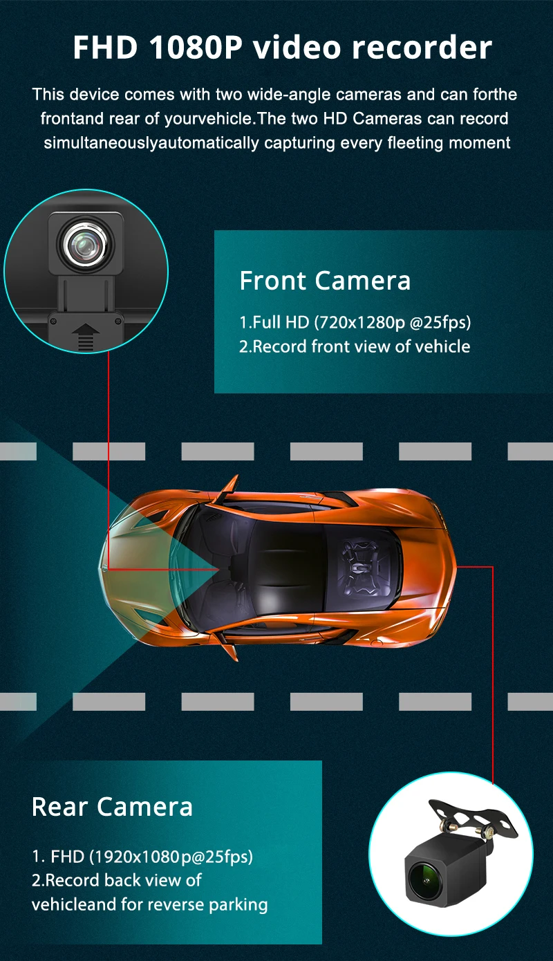 Более качественные изображения помогают определить важные детали, такие как номерные знаки, действия водителя и дорожные особенности, которые могут подтвердить вашу невинность. Спереди: 1280*720P; Сзади 1920*1080P