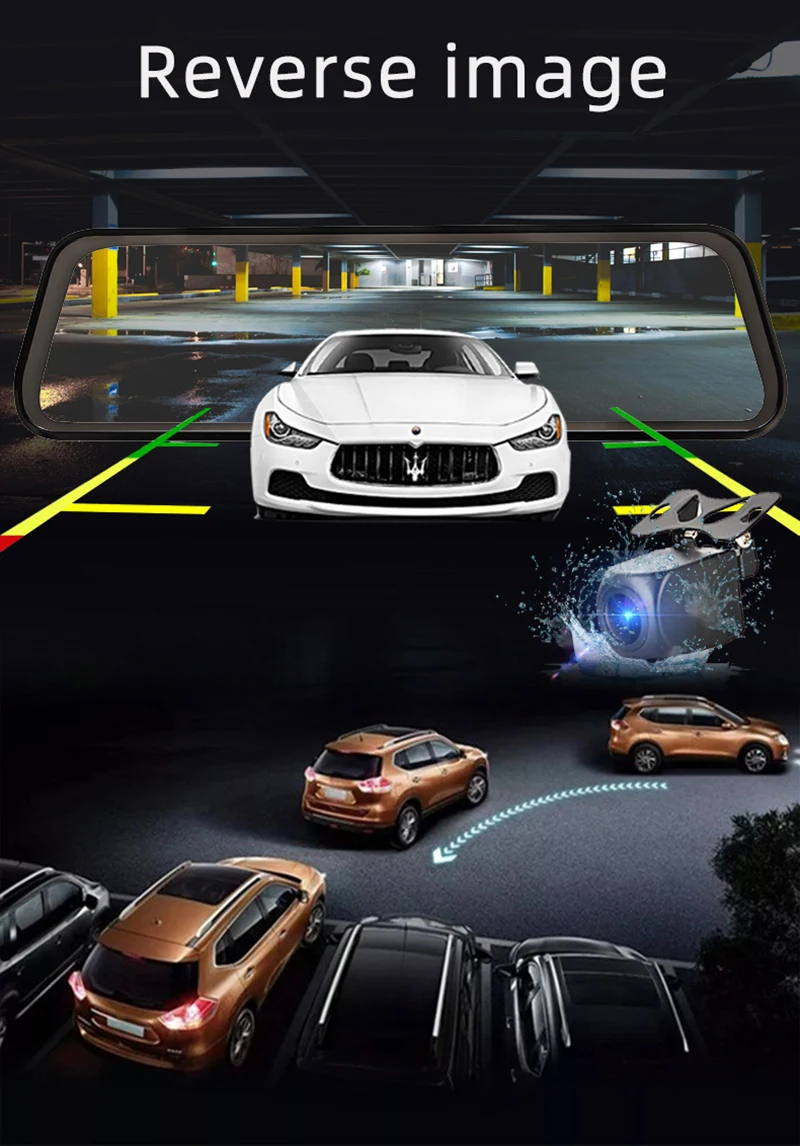 Когда автомобиль находится на заднем ходу, Автомобильный видеорегистратор автоматически переключается на заднюю камеру с парковочной линией, обеспечивает безопасную парковку.