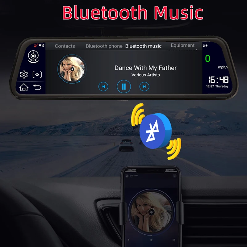 Благодаря bluetooth hands-free, После сопряжения bluetooth между dvr и смартфоном, вы можете совершать и принимать звонки непосредственно с зеркального видеорегистратора с помощью встроенного микрофона и динамика.