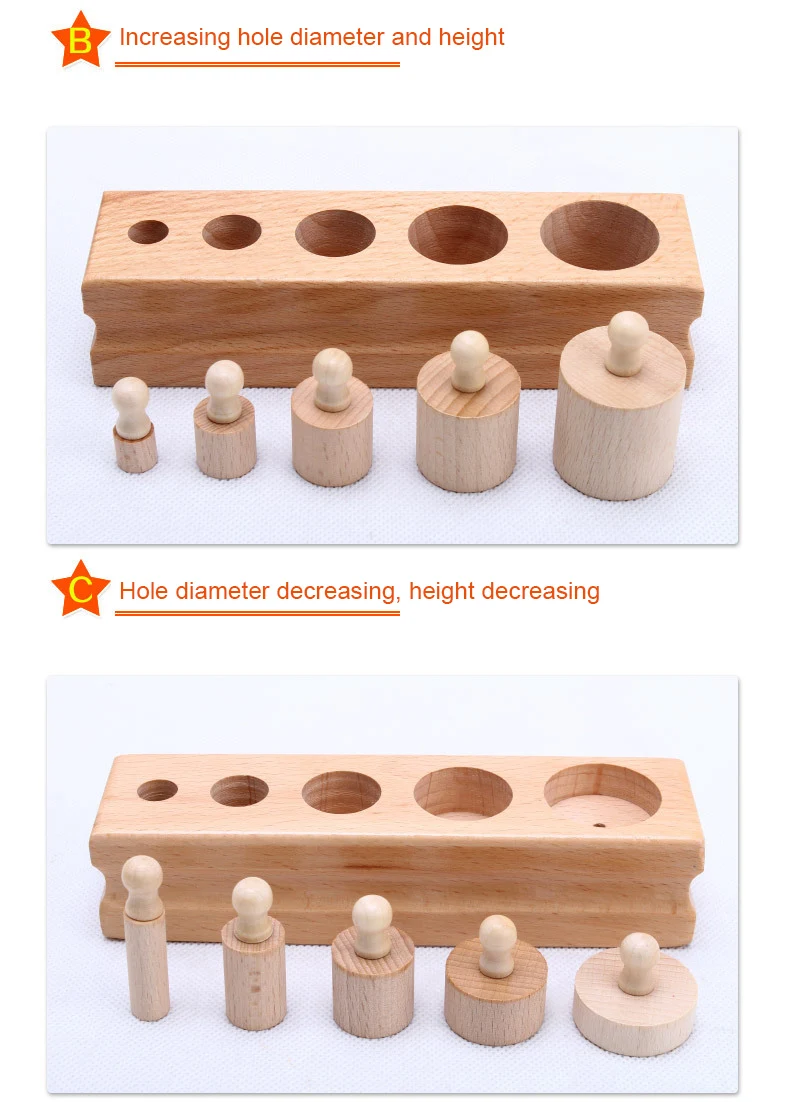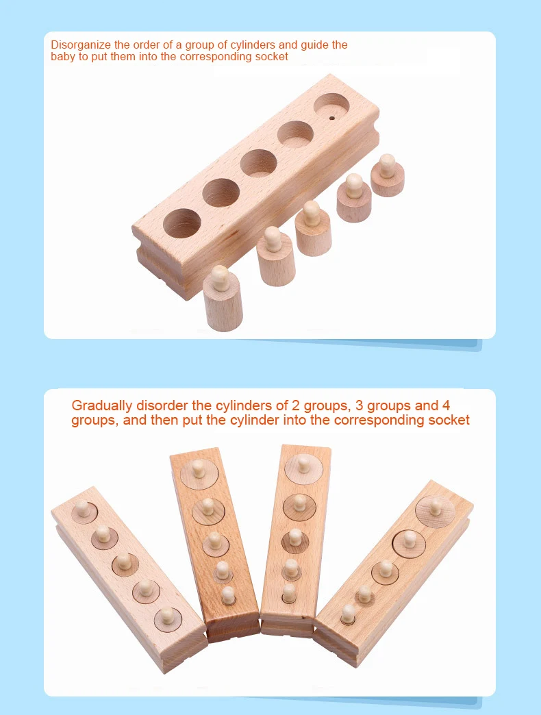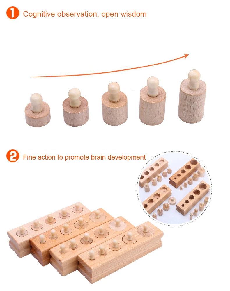 Монтессори Развивающие деревянные игрушки для детей цилиндрические Блоки Игрушки для развития ребенка практика и чувство 4 шт/1 Набор