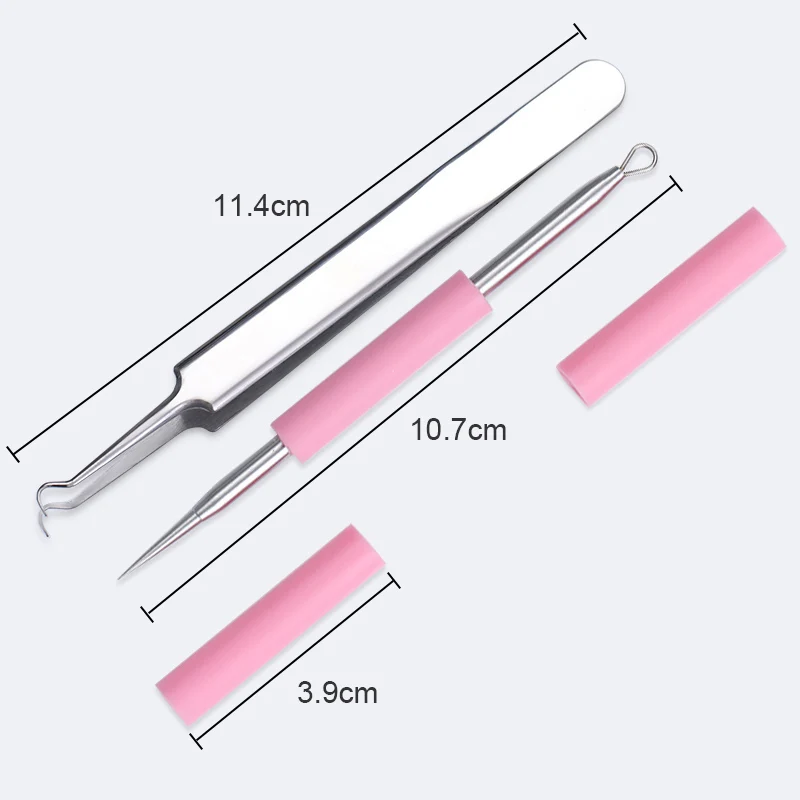 2 шт., инструмент для удаления черных точек из нержавеющей стали, экстрактор, пинцет, очиститель для лица с коробкой