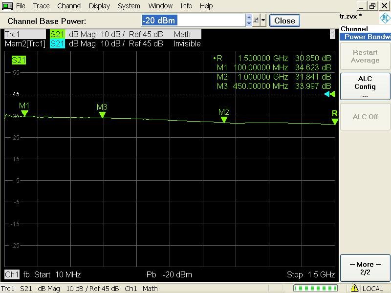 Первое для входного сигнала малого сигнала-15 дБм усиление: