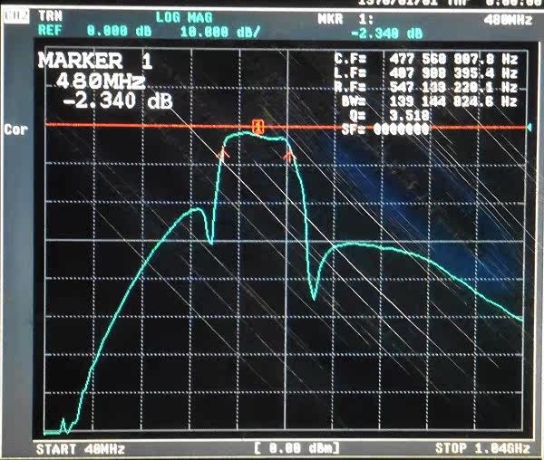 Полоса пропускания, охватывающая 420 ~ 540 МГц UHF, эффективно устраняет помехи от средних волн, длинных волн, fm-радио и телевизионных станций. Низкая потеря вставки, самая низкая мощность 2 Вт, используется для выходного фильтра передатчика низкой мощности. Модель: KFBP-420/540 Сопротивление системы: 50 Ом Центральная частота: 480 МГц Центральная частота пропуск частиц по уровню поверхности: <3 дБ (стандартно: 2,5 дБ) Полоса пропускания 3 дБ: 420 ~ 540 МГц Максимальная мощность нагрузки: 2 Вт (33 дБм) Диаграмма частотного отклика: