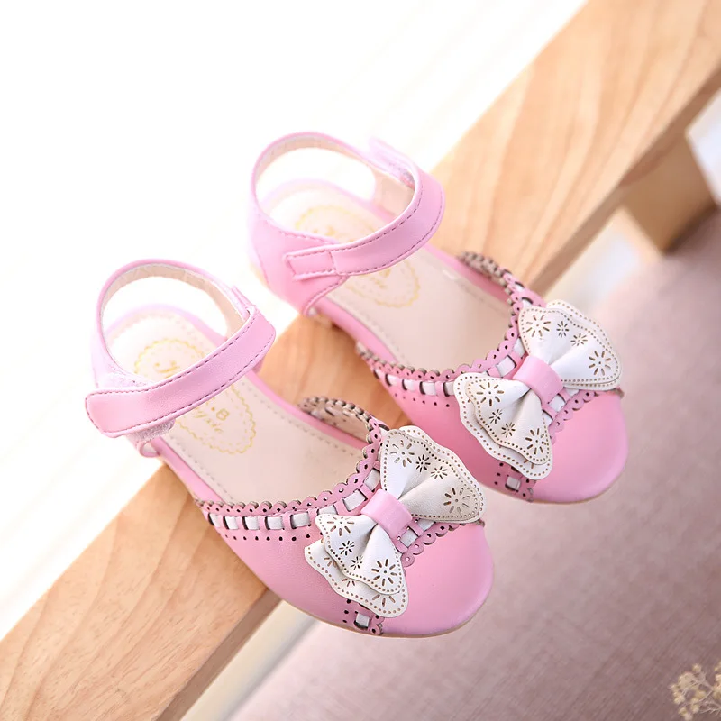 Детская летняя обувь принцессы для маленьких девочек, сандалии с бантиком, детская кожаная обувь на мягкой подошве, Infantil, нейлоновая кружевная обувь, Chaussures Enfants Fille