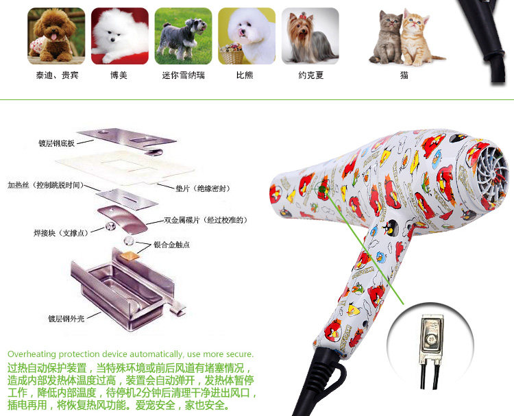 Информация о продукте: 0015 TИспользуется источник питания 220 В, удобный портативный, легкий, особенно с теплым ветром, и подходит для всех типов домашних животных.