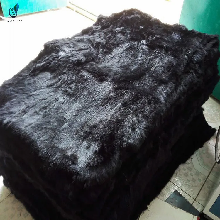 Окрашенная пластина из натурального кроличьего меха/черный кроличий мех