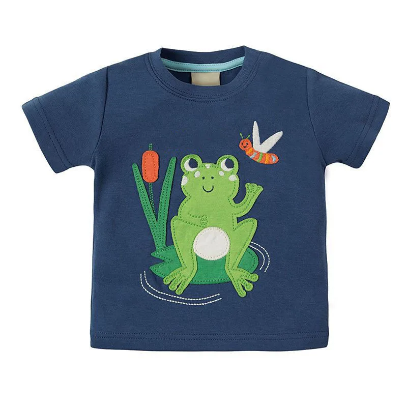 Футболка для мальчиков и девочек Little maven, летняя хлопковая Футболка с рисунком лягушки и динозавра
