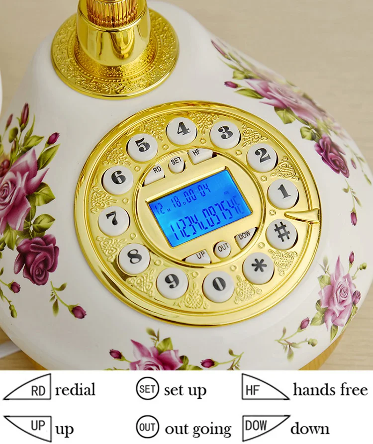 Античный керамический золотой цветочный материал и узор, подходит для украшения дома. Это настоящий стационарный телефон, его можно использовать по всему миру Нет внешнего источника питания, непосредственно с работой телефонной линии