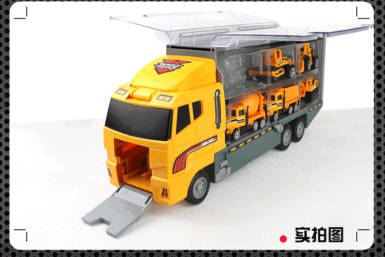 Грузовик изготовлен из пластика, 6 маленьких автомобилей являются частью сплава, а остальные-из пластикового материала.