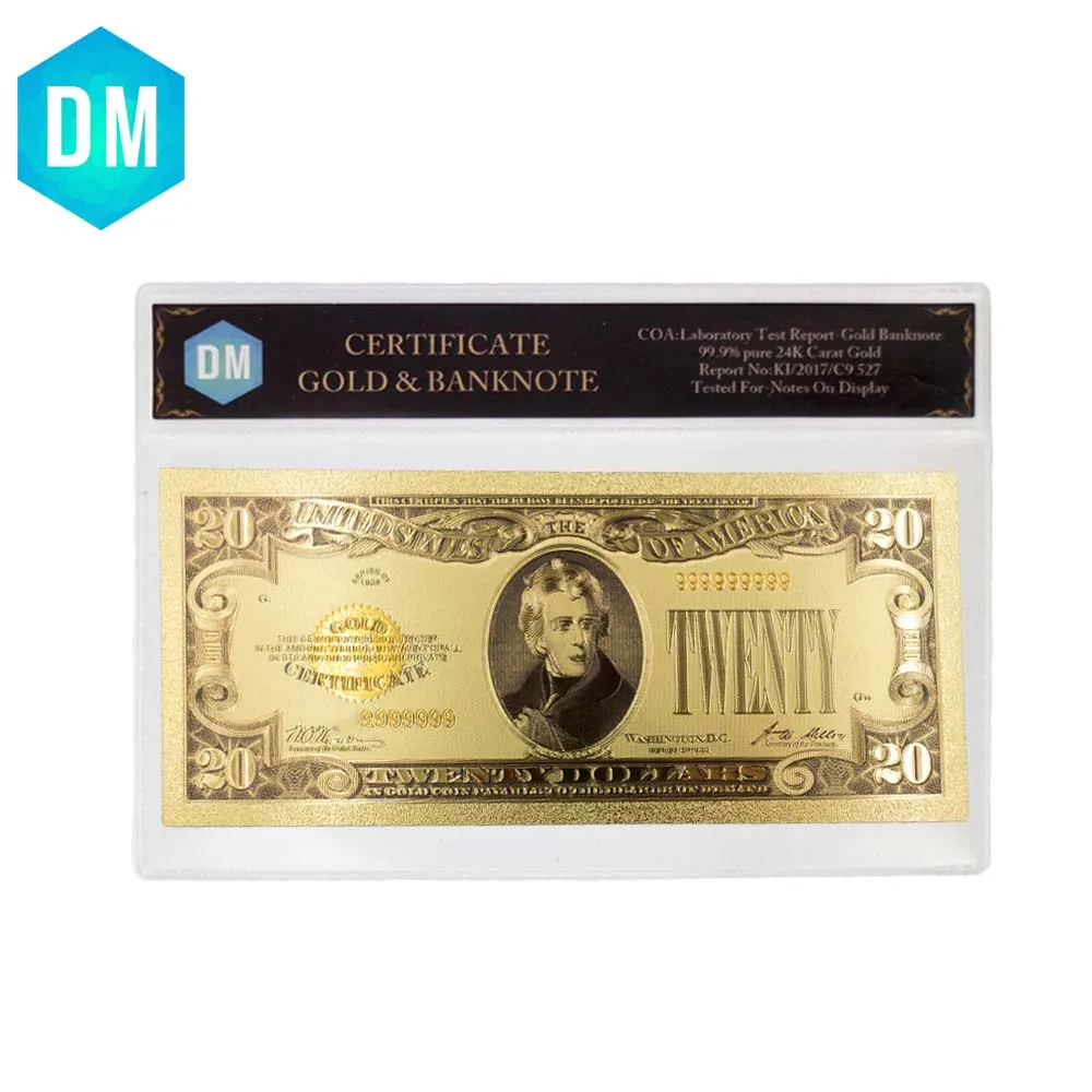 Название:24 k Золотая банкнота США 1928 издание 20 долларов банкноты мира поддельные деньги красочные работы для коллекций и подарков с COA