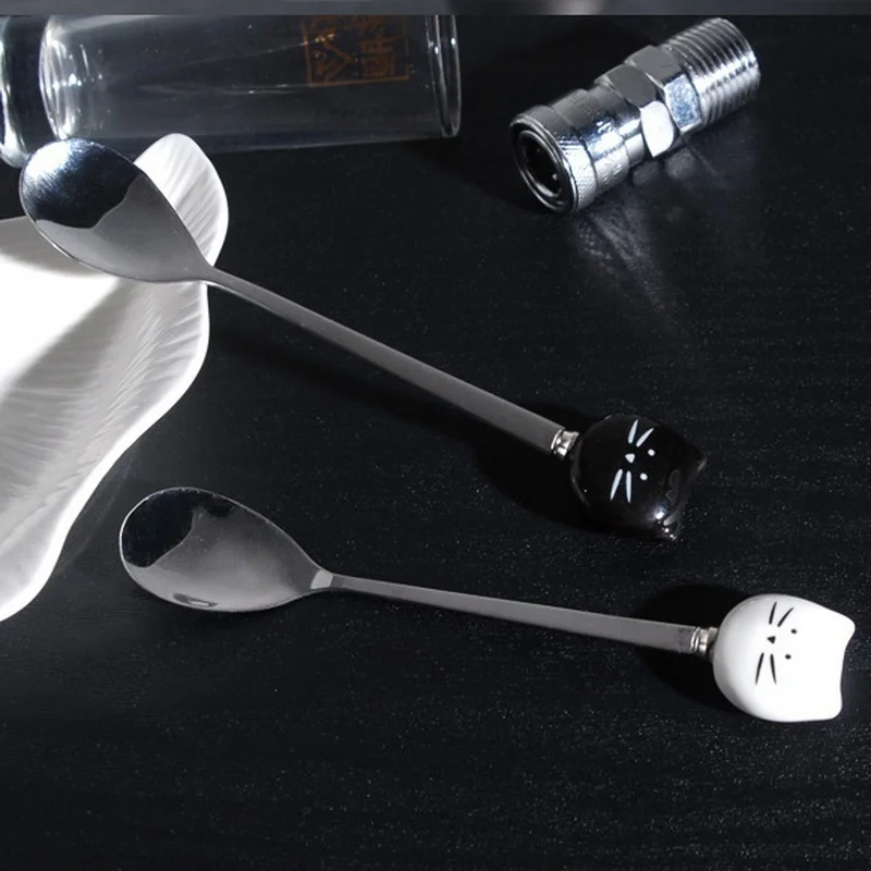 Скидка 50% милый мультфильм кошка нержавеющая сталь Чай Кофе Мороженое Ложки Посуда кухонные товары для дома