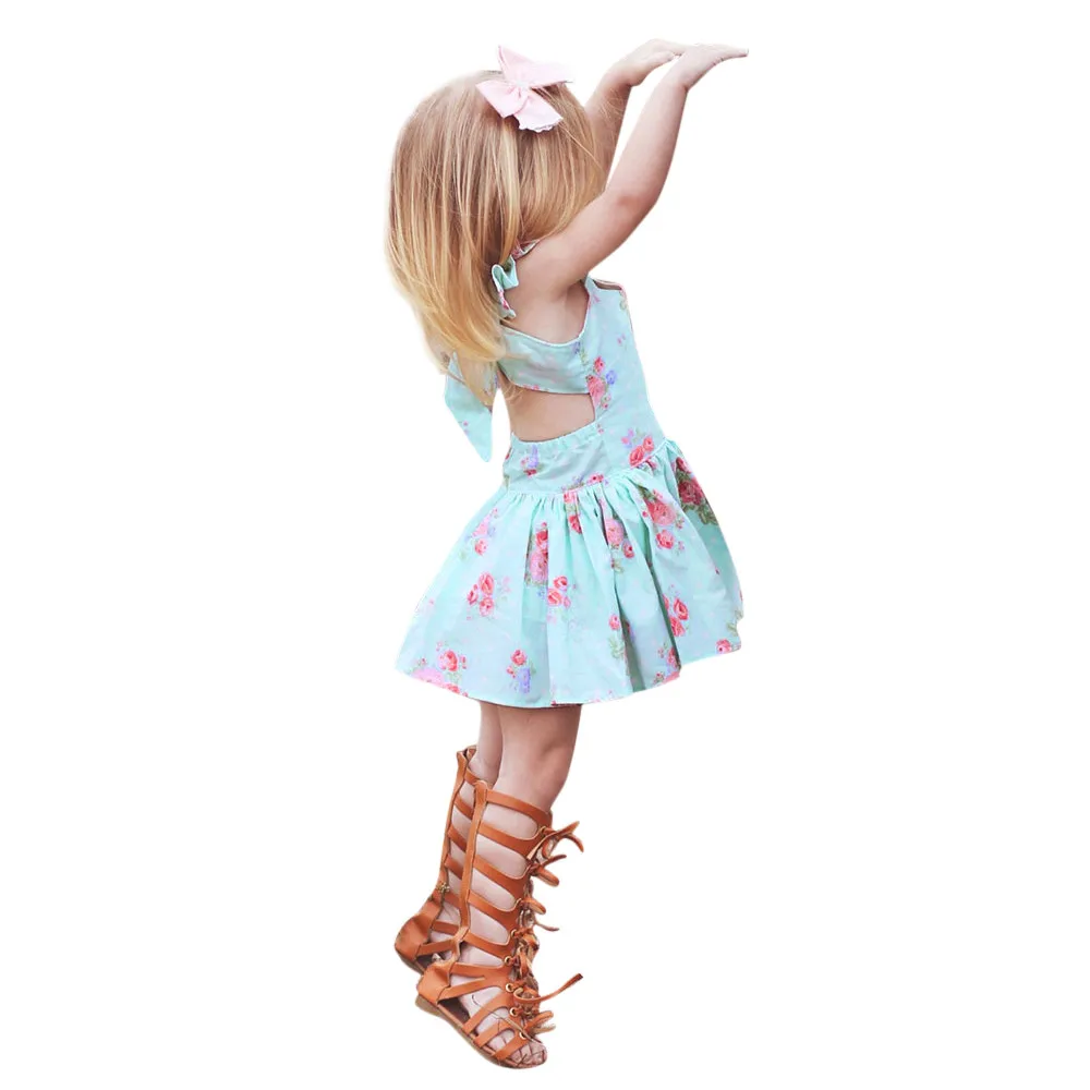 Платье с цветочным рисунком для маленьких девочекПлатье без рукавовПлатье принцессы с открытой спиной