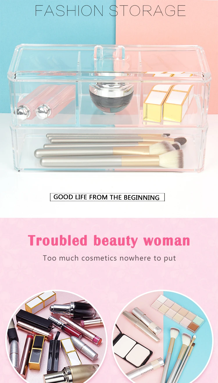 Прозрачный акриловый косметический ящик для хранения, который ставит на первый взгляд