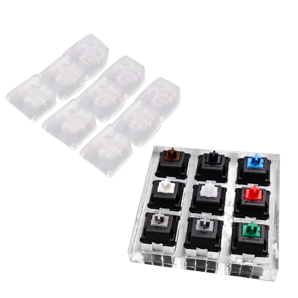 Примечание:Только 9 шт механический прибор для проверки клавиатуры, 9 шт колпачки, 1 9-осевая рама,Другие товары в комплект не входят.