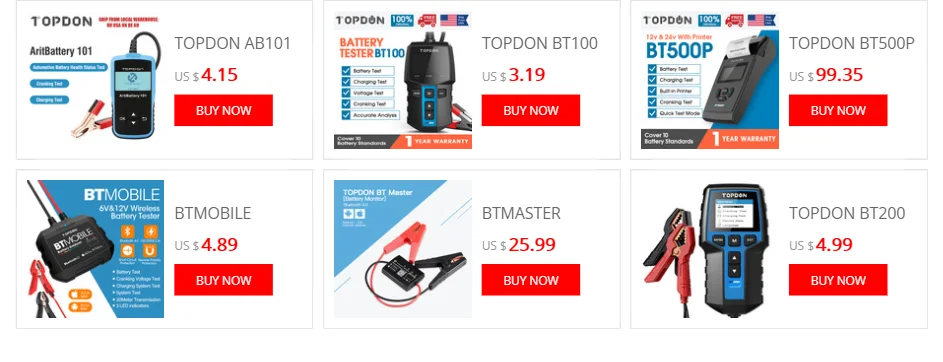 1: об этом 12V тестер: Topdon AB101 использует продвинутую технология измерения, работает на 12V легковых автомобилей и транспортных средств малой грузоподъемности и точно батареи тестов состояния здоровья, в том числе напряжение, пусковой мощности, состояние заряда и многое другое. 2: чтения результаты тестирования: этот груз Батарея тестер отображает 5 легкий для понимания Батарея результаты теста; «Батарея»/«Батарея, нужно Recharge'/ 'Replace, Cycle'/ 'Replace, плохой Cell'/ 'Charge, Retest'. Вы можете узнать Полный статус любого транспортного средства, никель-кадмиевых аккумуляторов батареи состояния здоровья с помощью одного простого теста. 3: аккумулятор и устраниение неисправностей: плохой сотовый тестовый инструмент поддерживает сгибать и зарядки Тест на почти все типы батарей обычных свинцово-кислотный аккумуляторная батарея AGM, спиральный пластинчатый и гелевый Аккумулятор, глубоко диагностики автомобиля система запуска и зарядки. 4: Высокая безопасность и удобство в использовании: этот анализатор батареи использует обратной полярности-Подключение защиты для того, чтобы избежать вреда для автомобильного аккумулятора или тестер, И предоставляет вам удобство непосредственно тестирования низкие батареи в автомобиле или из транспортного средства. 5: Поддержка нескольких языков: Тестер аккумуляторной батареи поддерживает следующие языки: английский, русский, испанский, французский, В итальянском стиле, Пособия по немецкому языку и система батарей стандарты CCA, BCI, CA, MCA, JIS, DIN, IEC, EN, SAE, GB, для научных исследований и разработки новых или опытных пользователей.