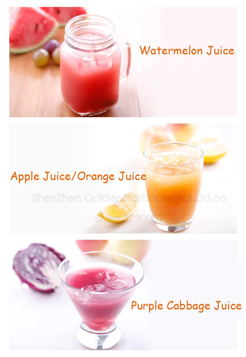 Рекомендуется использовать мягкие фрукты, такие как бананы, фрукты дракона, манго без косточек, киви и т. д. Не подходит для твердых фруктов, сердечников или твердых кож должны быть удалены перед соковыжималкой. Спасибо.