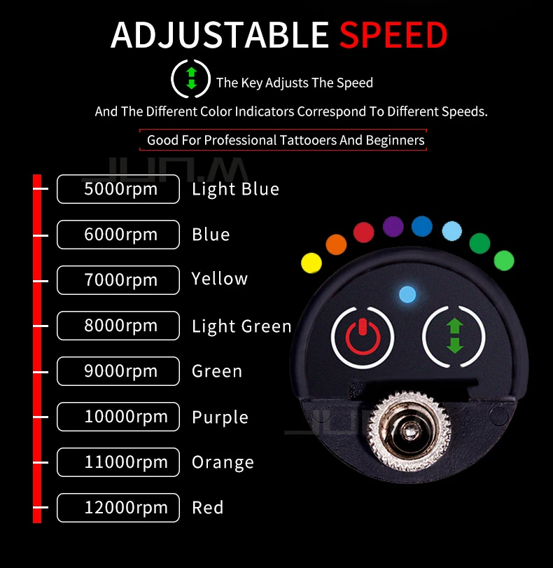 C. Индикатор напряжения. 500ORPM светло-голубые, 6000 об/мин Blue.7000RPM желтый, 8000 об/мин, светло-зеленый, 9OOORPM Green.10000RPM фиолетовый, 11000 об/мин, оранжевый, 12000 об/мин красного цвета.