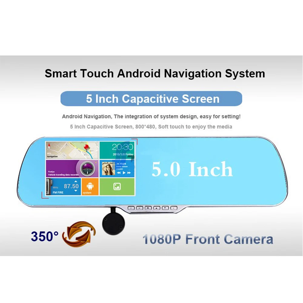 Сенсорная стяжка: 5,0 "емкостный сенсорный экран зеркало заднего вида