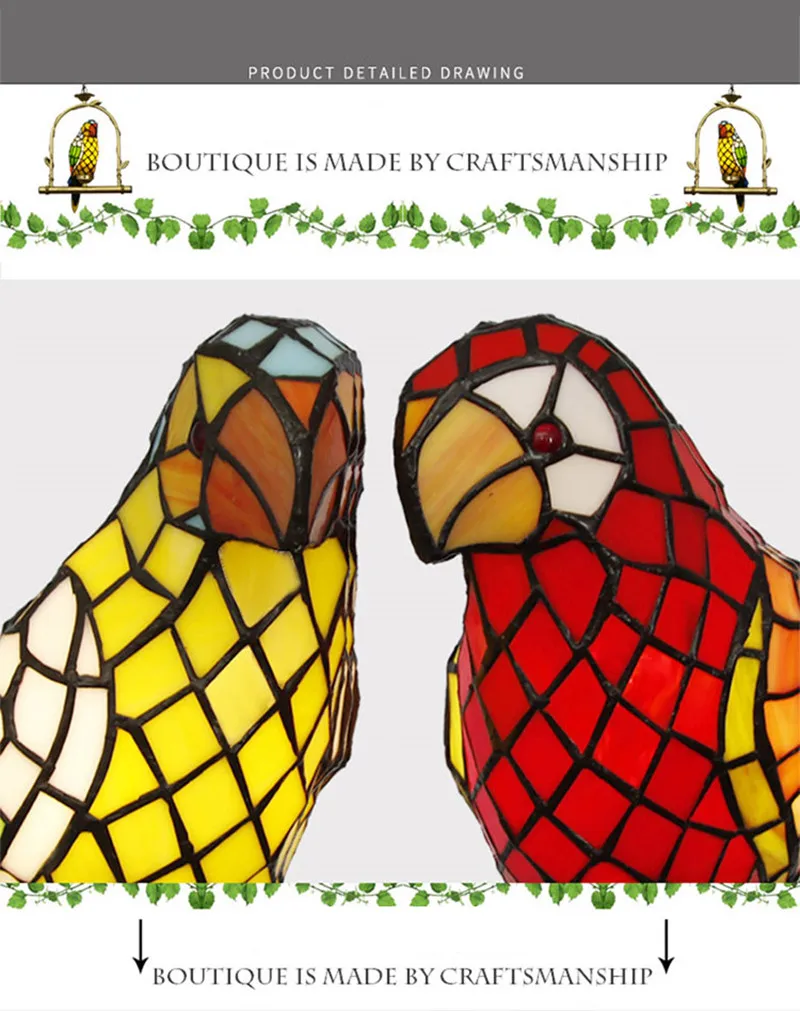 Одиночный попугай: ширина 33 см высота 45 см длина цепочки 26 смДва попугаи: ширина 40 см высота 48 см длина цепочки 26 см1 дюйм равен 2,54 смИсточник света: светодиодный светильникЛампочки в комплекте: Нет
