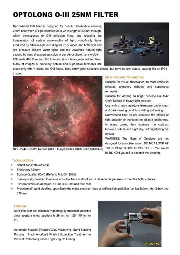 Высоко ценовая передача проходного диапазона и оптическая плотность смещения гарантирована благодаря планетарной системе вращения Optolong, однородной и точной процедуры покрытия