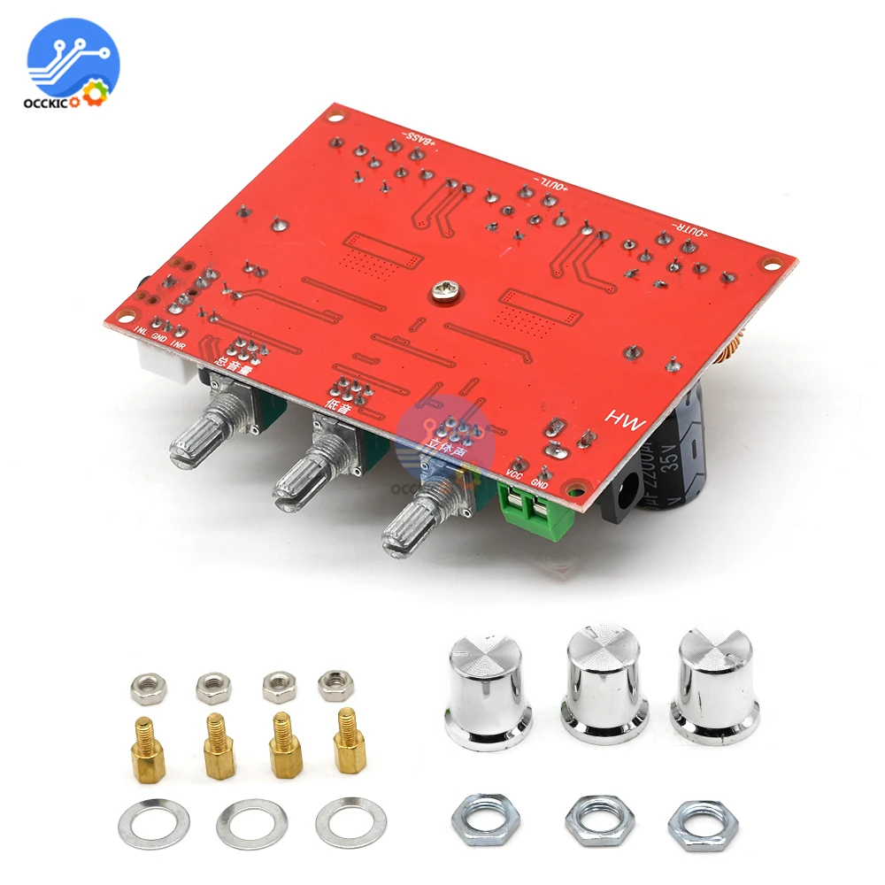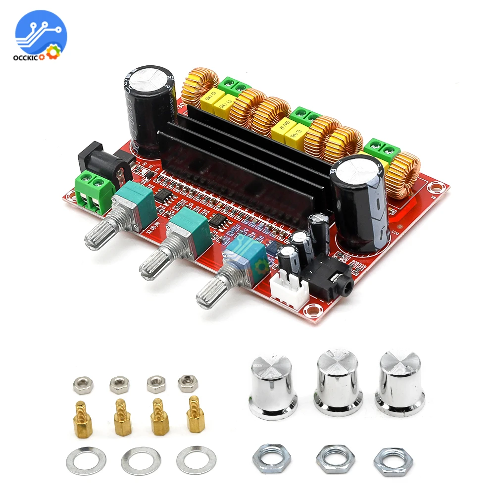 Характеристика: Используются два высококачественных цифровых усилителя TPA3116D2. Качество звука очень хорошее, высокая эффективность, усиление мощности. 50 Вт * 2 + 100 Вт 2,1-канальный (левый/правый и бас каналы), высокая эффективность и низкое тепло. Оснащен 12-24 В постоянного тока, широким входным напряжением. Пользователи могут легко регулировать громкость самостоятельно. Применимое Сопротивление динамика: 4-8 Ом. Просто подключите источник питания и колонки и наслаждайтесь чистой цифровой музыкой! Примечание: Монтажная плата усилителя должна питаться от источника питания постоянного тока (DC12-24V), предпочтительно с использованием высокопроизводительного импульсного источника питания. Не используйте трансформаторы! Спецификация продукта: Напряжение питания: 12-24 В постоянного тока Чип: TPA3116 * 2 Тип канала: 3 канала (левый канал, правый канал, сабвуфер) Выходная мощность: 50 Вт * 2 + 100 Вт * 1 сабвуфер Соответствие на выходе: 4-8 Ом Аудиовыход: терминал Частотный диапазон отклика: 14-100 кГц Отношение сигнал-шум: 100% Частота переключения: 1,2 МГц Характеристики печатной платы: 100*70*30 мм/3,94*2,75*1,18 дюйма (Д * Ш * В) Вес: 113 г/3,98 унций Размер посылка: 13,5*11*5 см/5,31*4,33*1,97 дюйма (Д * Ш * В) Вес посылка: 178 г/6,3 унции Упаковочный лист: 1*2,1 канальный аудио усилитель платы