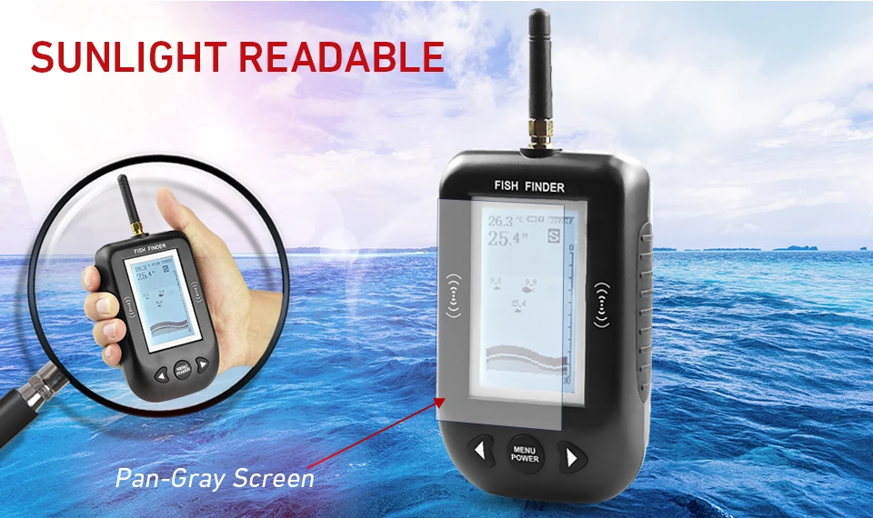 Erchang Sonar беспроводной ЖК-рыболокатор 36 м глубина сигнализации преобразователь морской ледяной рыболокатор сАнглийский/русскийДисплей