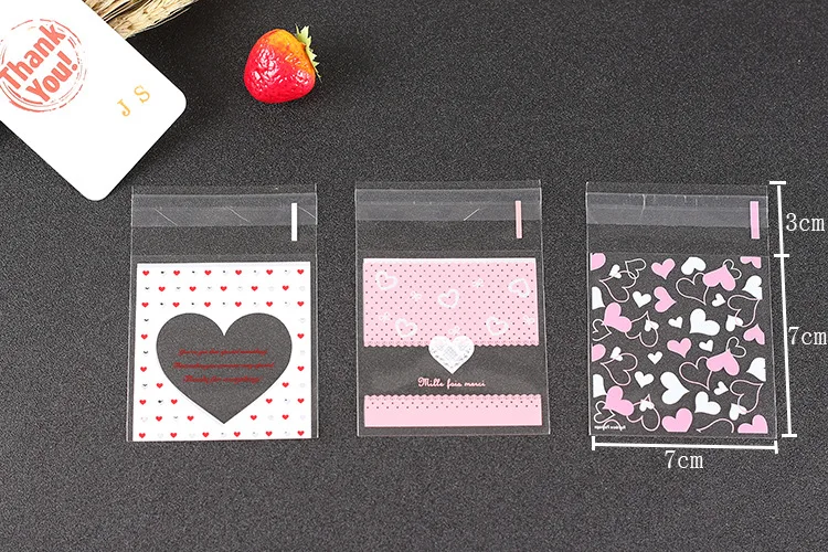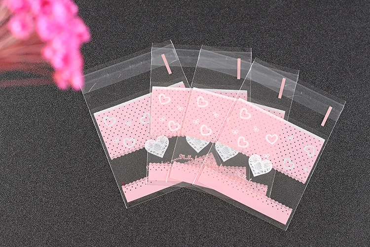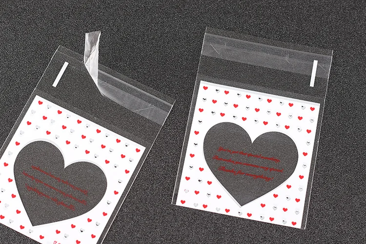 100 шт. милый мультяшный самоклеящийся пластиковый пакет с узором в форме сердца, подарок на свадьбу, день рождения, печенье, подарочная упаковка для конфет