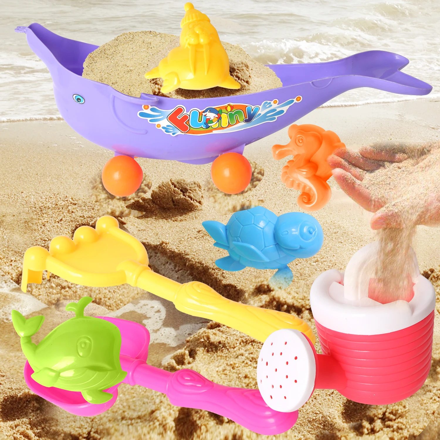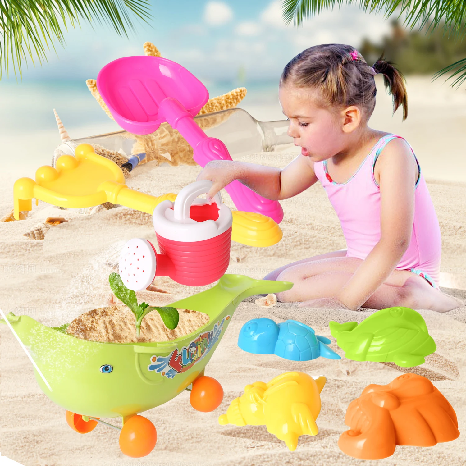 Мультяшный дельфин; корзину Набор для игры на пляже