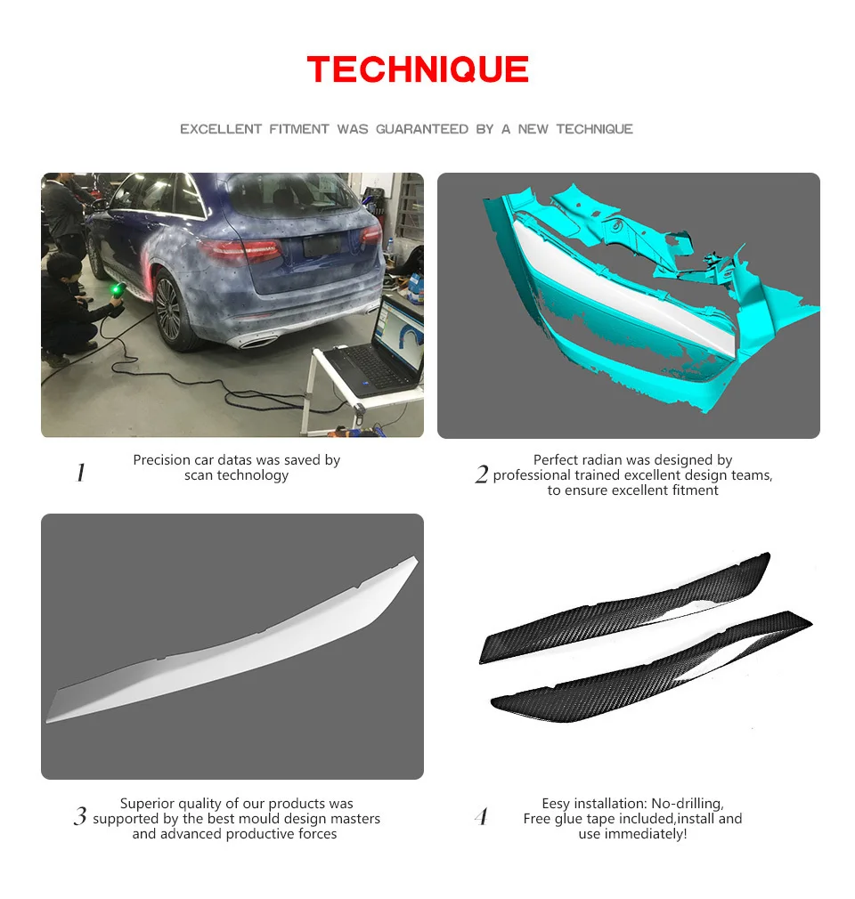 3. Обработка: 3D-дизайн, вакуумное формование, тестовая установка на настоящих автомобилях, гарантия монтажа 100%