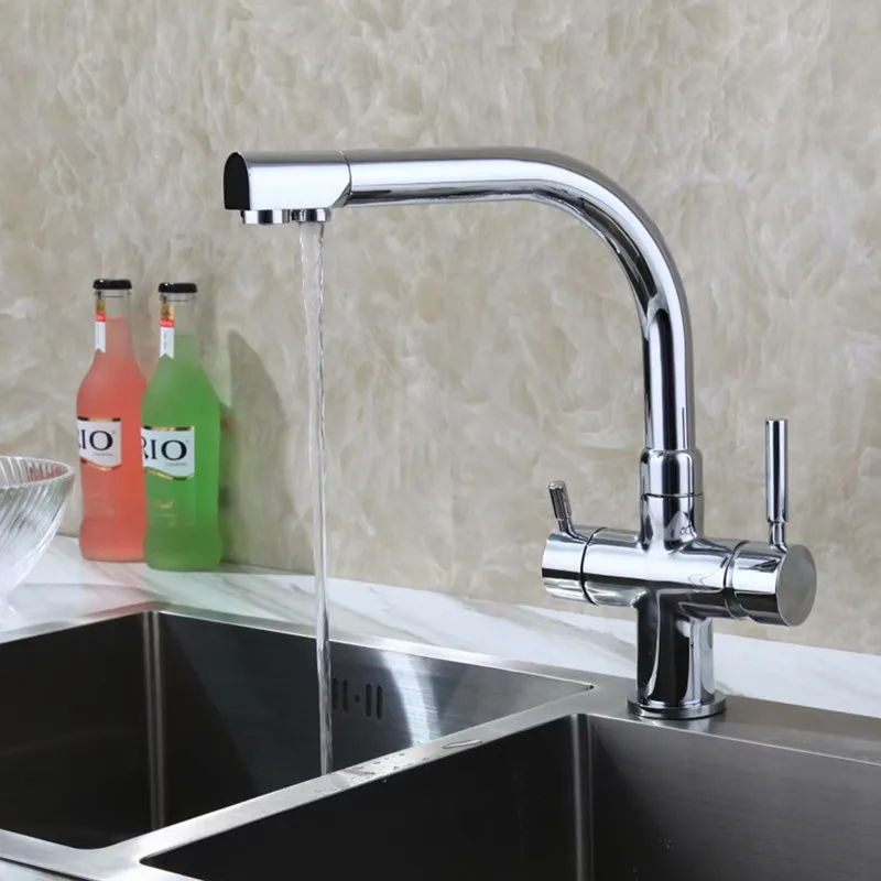 Латунная конструкция хромированный смеситель для кухни 3-ходовой водный фильтр краны