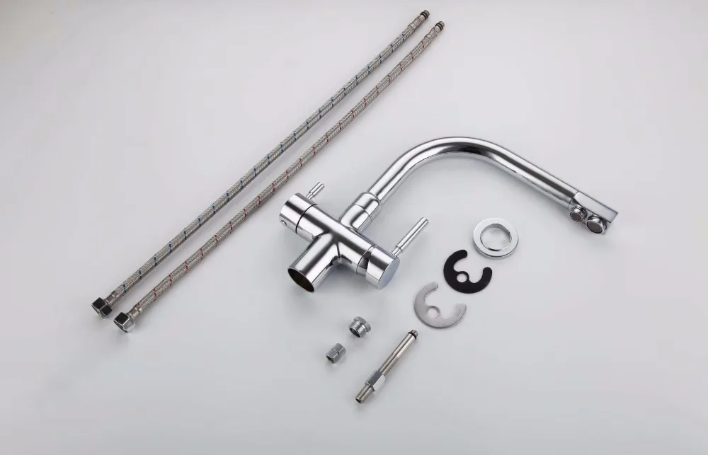 Распределяет горячую и холодную воду с рычагом миксера на правой стороне Распределяет фильтрованную воду с левого рычага (при подключении к комплекту фильтров для воды, в качестве альтернативы можно подключить к неразмягченному питанию для воды)-см. Аксессуары для комплектов фильтров для воды. Носик крана имеет отдельную внутреннюю трубку для фильтрованной воды, чтобы избежать смешивания с нефильтрованной Стильный современный дизайн в хроме Используются керамические клапаны, легко установить Труба может поворачиваться на 360 градусов, достигать большой площади. Экономит пространство и беспорядок-нет необходимости в раздельном водопроводе или отверстиях в раковине, просто замените текущий кухонный кран этим 3-сторонним краном Легко подключить и заменить существующий кран Наш трехходовой кран для горячей и холодной кухни удаляет опасные токсины и вредные загрязняющие вещества из вашей водопроводной воды со стилем, легкостью и эффективностью! Благодаря гладкому, прочному, современному дизайну с высоким, круглым и далеко идущим краном, наш новый Трехходовой кухонный кран является идеальным дополнением к вашей системе фильтрации воды под раковиной, доступ к вкусной, кристально чистой, без токсинов фильтрованной воде ветерок! Характеристики: двойная струящаяся струя для обычной водопроводной воды и фильтрованной воды из одного удобного смесителя Две ручки для обычной и фильтрованной воды гладкий, современный дизайн, который дополняет практически любой кухонный стиль, простой в установке Включает в себя: 1 трехходовой кран 2 горячей и холодной нержавеющей стали шланги 1 адаптер фильтра для воды 1 резиновая прокладка 1 прокладка из нержавеющей стали 2 года гарантии