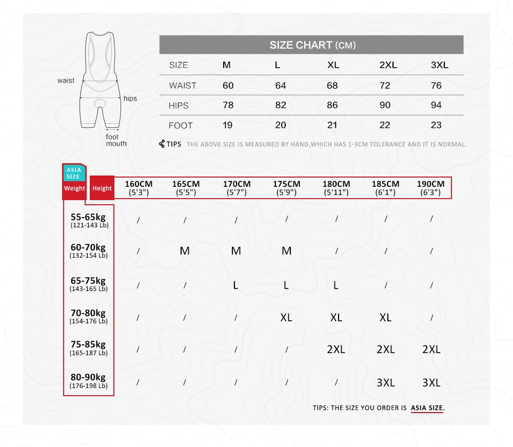 Таблица азиатских размеров