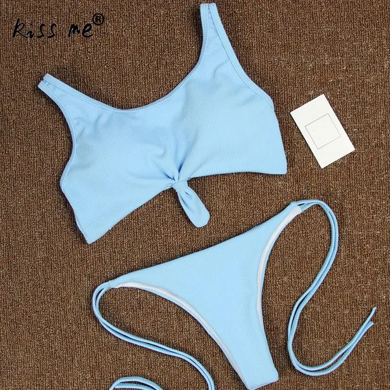 Оптовая продажа пикантные стринги бикини 2018 для женщин купальный костюм одноцветное цвет Дамская Купальники для малышек бразильские