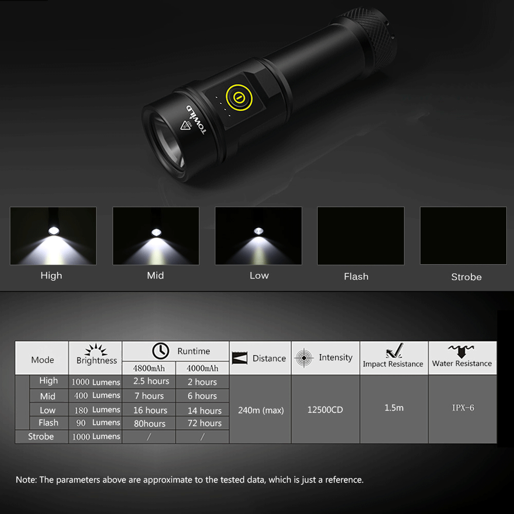 Супер яркий: Светильник обеспечивает максимальную яркость до 1000 люменов и Максимальный радиус действия до 240 м.