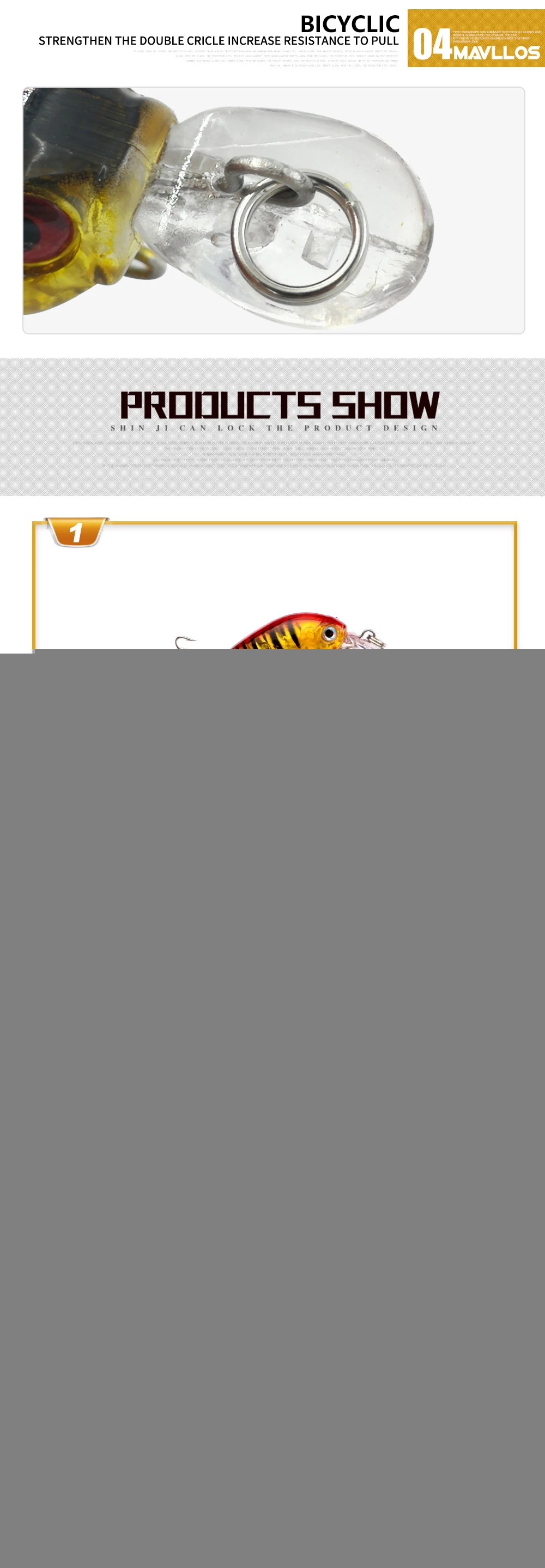 Особенности:1. Острые крючки VMC: оснащены оригинальными французскими VMC крючками, антикоррозийными, более мощными, прочными, пресная вода морская вода универсальная.2. Имитация кожи рыбы (лазер): дизайн имитации кожи рыбы делает ее более привлекательной для большой рыбы.3. Металлические шарики: шарики из нержавеющей стали внутри, чтобы сохранить баланс приманки для рыбалки, для дальнего расстояния литья.4. Более сильные Бициклические Кольца: усиливает двойной круг повышенное сопротивление тяге.5.3D глаза рыбы: 3D Глаза Моделирования, большие и яркие, более Соблазнительные Светоотражающие лучше.Информация о продукте:Бренд: MavllosМодель приманки: MHL20Тип приманки: жесткая рыболовная приманкаВес приманки: 4 гДлина приманки: 45 ммГлубина погружения: 0,6-1,2 мПлавучесть: плавающая приманкаКрючки: 2 крючка VMCГлаза: 3D рыбий глазКольца: велосипедныеХарактеристика: имитация рыбы дышит5 цветов: A,B,C,D,E,F,G,H,IУпаковка:Вес изделия: 10 гВес посылка: 35 гПосылка: