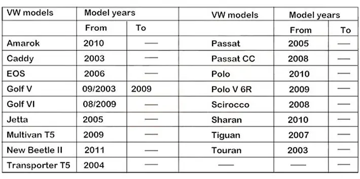 Поддержка всех PQ 35/46 автомобилей (не может использоваться для MQB Polo).