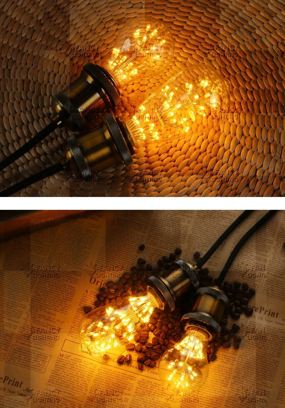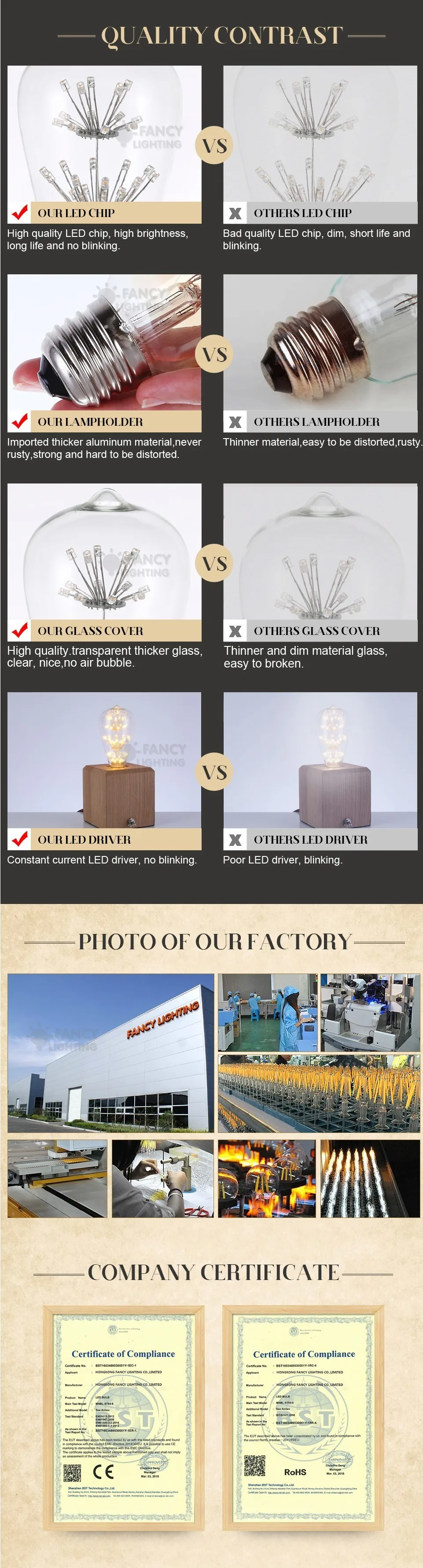 Модель: лампа звездного неба ST64/A60 Размеры: ST64: 64*145 мм (2,6*5,5 дюйма) A60: 60*100 мм (2,4*3,9 дюйма) Напряжение: 85-265 в перем. Тока (Не Диммируемый) Переменный ток 220 В (с регулируемой яркостью) Мощность: 3 Вт Патрон: E27 Цветовая температура: теплый белый 2300 K