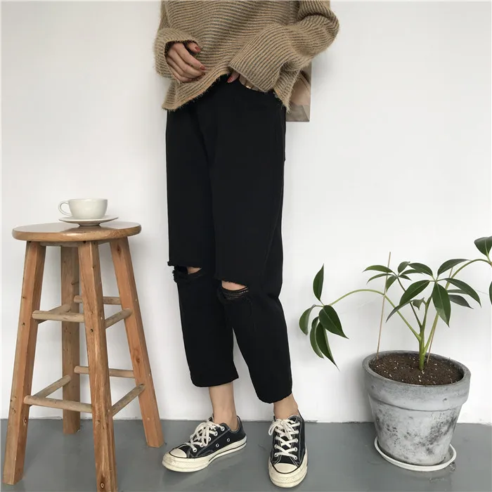 Новые модные рваные джинсы с высокой талией и широкими штанинами в стиле Харадзюку; Цвет белый, черный; Джинсовые брюки; Mono Verano Mujer