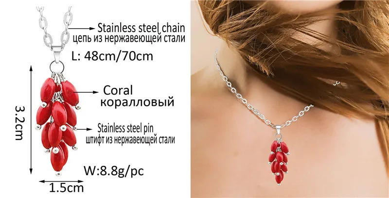 Материал: натуральный красный коралл, нержавеющая сталь для всего металла.