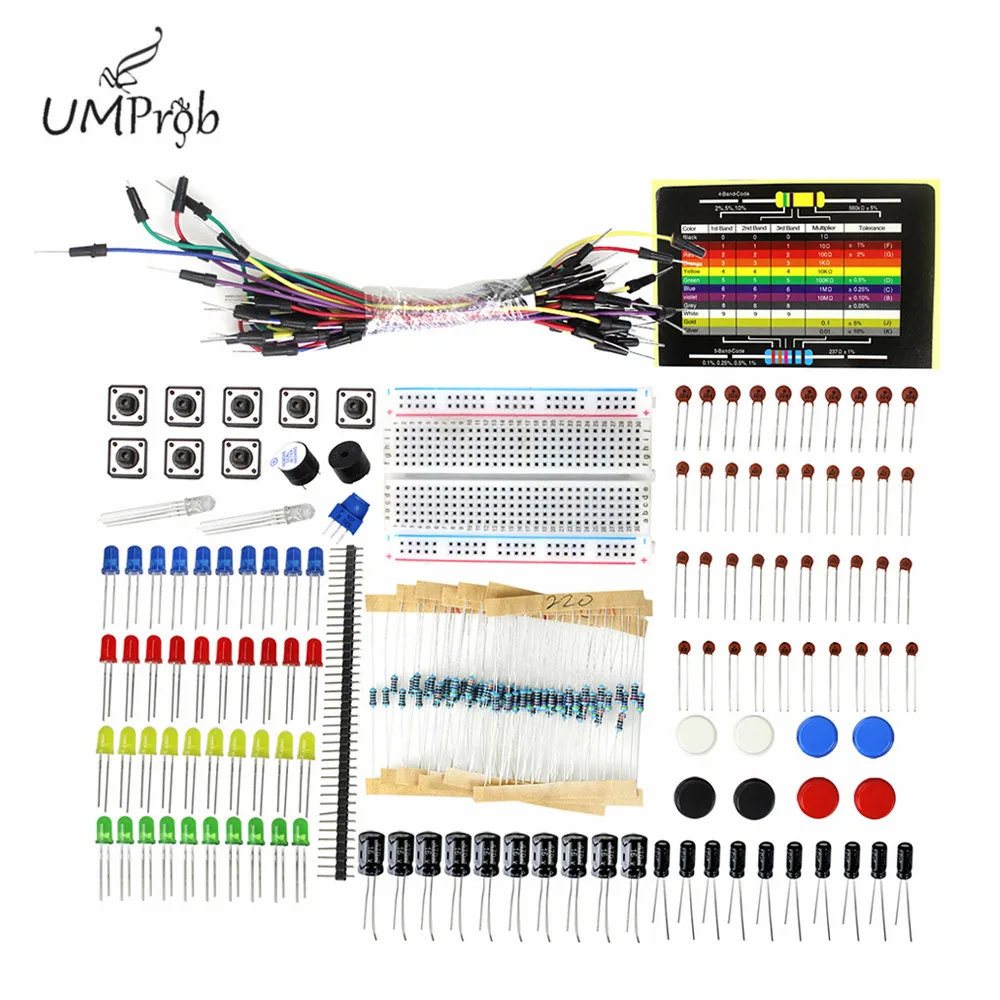 Школьный образовательный лабораторный стартовый комплект, резистор/светодиодный/конденсатор/перемычки/макетный Резистор Комплект с розничной коробкой для arduino